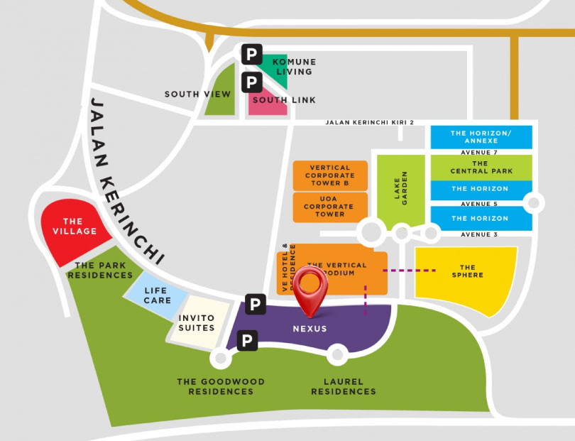 Entrance A (Basement car park) – Located along Jalan Kerinchi, turn left after Nexus to enter the basement car park.