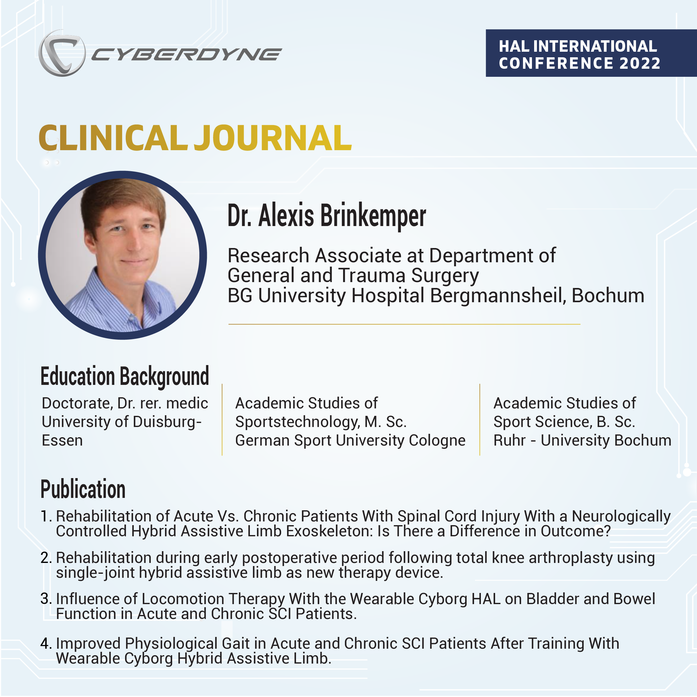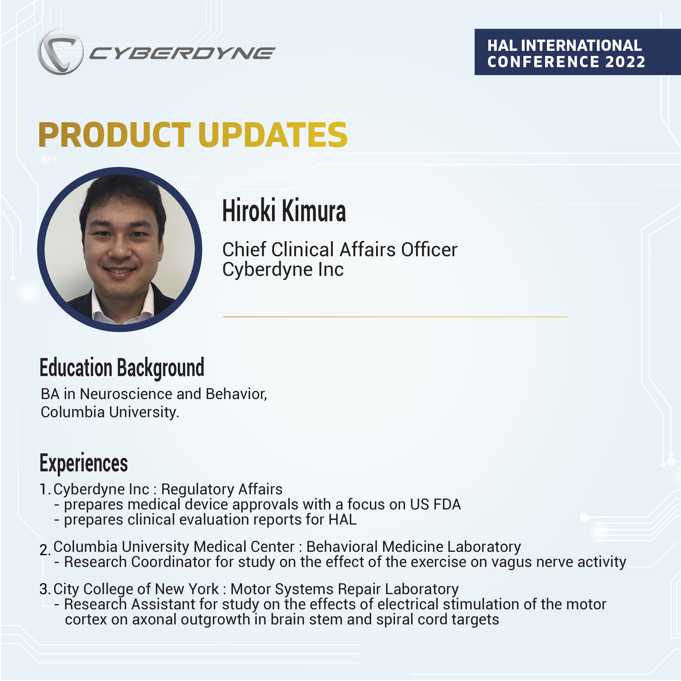 HAL [Hybrid Assistive Limb] is the world‘s first * Wearable Cyborg, by which a wearer‘s physical functions can be improved, supported, enhanced and regenerated. Our 3 main products consist of HAL Lower Limb Type, Single Joint Type, and Lumbar Type.