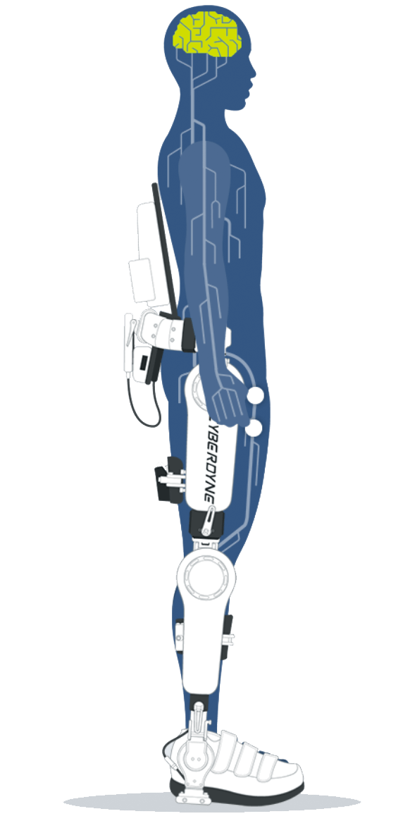 When a person tries to move, the brain sends a signal to the muscle to initiate the movement. At that time, a very faint signal reflecting the wearer’s intention to move appears on the skin’s surface. HAL can detect these so-called ‘bio-electrical signals’ (BES) through sensors affixed to the skin’s surface. Even though the BES from a paralyzed person is too weak to trigger movement on its own, HAL can detect these very faint signals and aid in completing the movement according to the wearer’s intention, thereby making locomotion and movement possible.